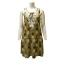 花柄レース襟付き クラシカル アーガイル柄ワンピース 【上品で大人かわいい。夏に涼しいフェミニンな一枚】 フェミニンファッションが似合う夏ワンピースです。 クラシカルでかわいい****アーガイル柄が目を惹きます。 花柄レース襟がアクセントとなり、顔周りを華やかに、上品で大人かわいく着こなせます。 乙女心をくすぐるディテールが満載の女子アイテムです。 ワンピースの生地は**ポリエステル100%**で、涼しさがあり****軽くて着心地抜群。 裏地(中布)もポリエステル100%なので、安心感があります。 ノースリーブ のパフスリーブデザインで、夏のお出かけにぴったりです。 |