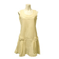 清涼感溢れる ノースリーブ ドロップウエストワンピース 【綿80%で涼しい着心地!レイヤードで着回し力抜群のMサイズワンピース】 真夏のコーディネートにぴったりの清涼感あふれるノースリーブワンピースです。 綿80%の優しい肌触りで、着心地抜群。 ふんわりとした着心地で、女子力アップにつながる可愛くシンプルなデザインです。 トレンド感のあるドロップウエスト(ローウエスト)の切り替えから、プリーツ風のフレアスカートが広がるレトロシックなデザイン。腰元にあしらわれたボタンがアクセントになっています。 シンプルなパステルカラー(オフホワイト/クリーム)の色合いは、サマージャケットやカーディガン、シアーシャツなどを羽織るレイヤードスタイルに最適です。 きれいめにもカジュアルにも着回しが効き、夏の着こなしの幅が広がります。 |