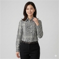 【一枚で華やぐ、大人フェミニンシャツ】 【デザインの魅力】 カジュアルなブロックチェックに、 胸元のティアードフリルをプラスした華やかな長袖シャツ。 ブラック×グレーの落ち着いた配色で、 甘くなりすぎず大人の女性らしさを演出します。 ヒップを自然にカバーする約70cmの着丈で、気になる体型もさりげなくカバー。 コットンブレンド素材でシワになりにくく、忙しい日でも扱いやすいのが嬉しいポイントです。 【カラーバリエーション】 ■ブラック×グレー(Black × Grey) 落ち着いたモノトーンのブロックチェック。 どんなボトムスとも合わせやすく、オン・オフ問わず活躍する万能カラーです。 【コーディネートのおすすめ】 ボリュームのあるフリルデザインには、スキニーパンツやテーパードパンツなど、すっきりとしたボトムスが好相性。 デニムと合わせれば、大人可愛いフェミニンカジュアルスタイルが簡単に完成します。 前を開けて羽織りとして使えば、春や秋の軽いアウターとしても活躍。 1枚で着回しの幅が広がる、頼れるアイテムです。 【こんな方におすすめ】 ・体型カバーしながらおしゃれを楽しみたい方 ・甘すぎない大人フェミニンが好きな方 ・着回し力の高いトップスを探している方 今シーズンのワードローブに、ぜひ取り入れてみてください。 |