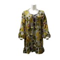 温もり感じる レトロ花柄 ベルスリーブチュニック 【ゆったり着れるMサイズ。細身パンツとのコーデにぴったりな秋冬アイテム】 温もりあるカラーと花柄が上手くマッチした長袖ワンピースです。 秋から冬にかけてゆったりと着用いただけるチュニック丈で、細身パンツやレギンスと好相性です。 ポリエステル95%・ポリウレタン5%の伸縮性ありの素材を使用しており、着心地抜群です。さらっとした肌触りで、重ね着しやすいのも魅力です。 袖口はフレア袖(ベルスリーブ)、裾はフリルで可愛らしさをプラス。 首元のリボンタイは結んでも垂らしてもアレンジ自在です。 体型カバーにもなるゆったりシルエットで、着回し力の高い大人可愛い一着です。 |